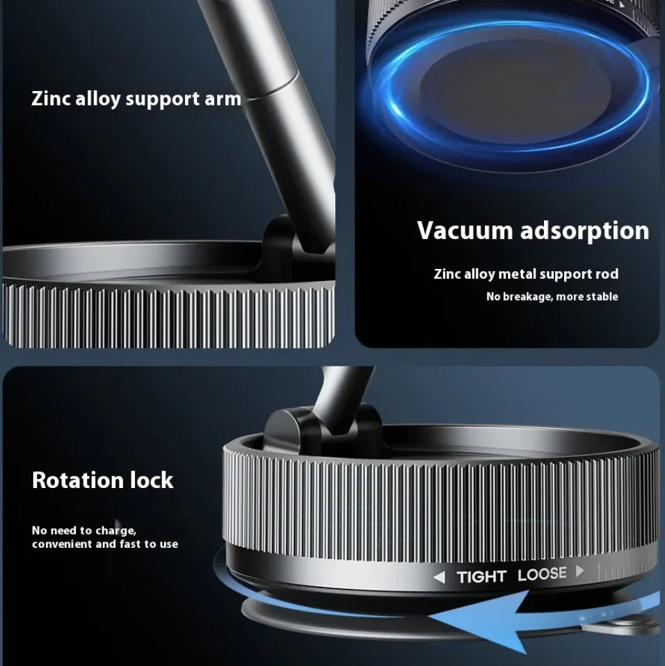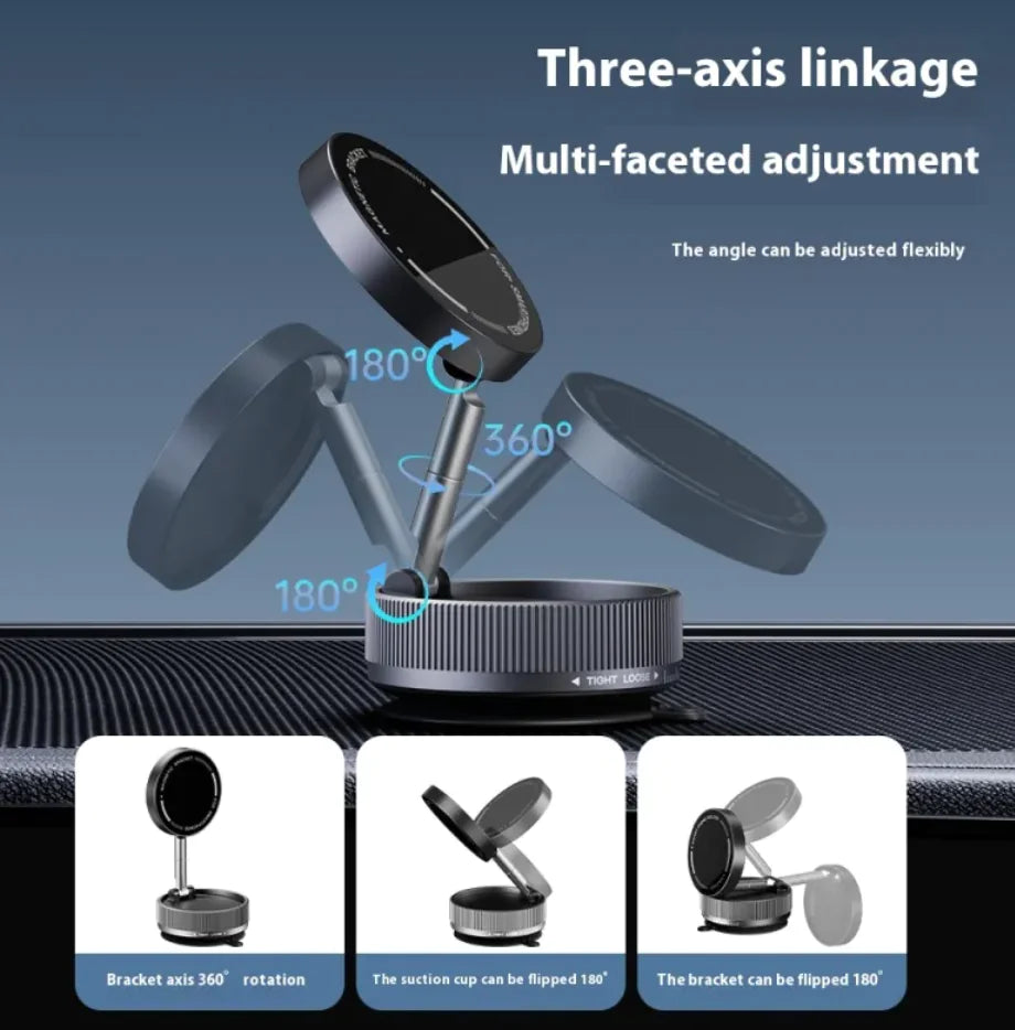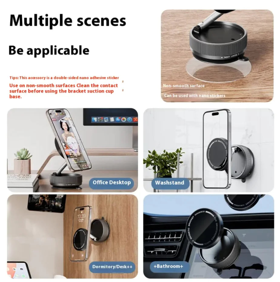 Experience ultimate flexibility with this 720-degree rotating magnetic phone holder. Featuring a strong vacuum suction and multi-scene adaptability, this stand provides a stable and secure grip for your device. Its foldable and rotating design allows for easy positioning, making it perfect for desks, cars, and home use.