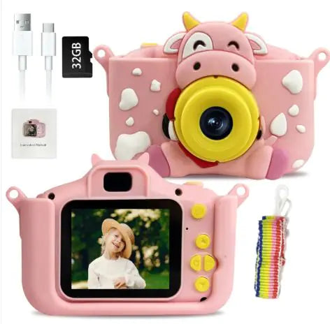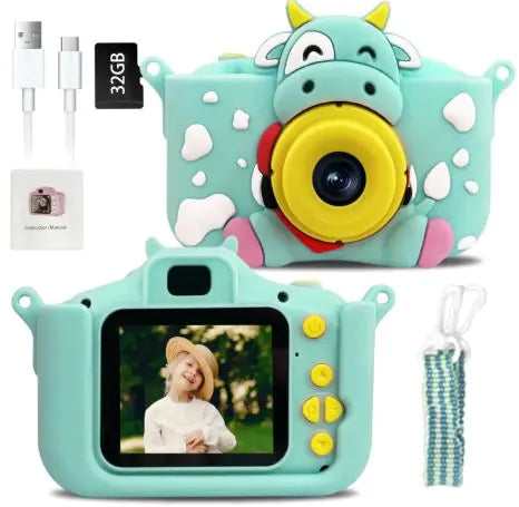 The Kid Mini Camera is a fun, compact device designed for young photographers, available in vibrant colors like pink, emerald, sky blue, and violet. Measuring 906548mm, this small but feature-packed camera offers a range of functions, including games, a timer, photo stickers, video recording, filters, photo capture, continuous shooting, and instant photo printing. Made from durable ABS material, it's sturdy and lightweight, perfect for kids. The package includes a silicone case for protection, a manual, charging cable, double hook lanyard, and optional memory card with two pieces of pearl cotton for added protection during transport. Ideal for encouraging creativity and capturing memories!