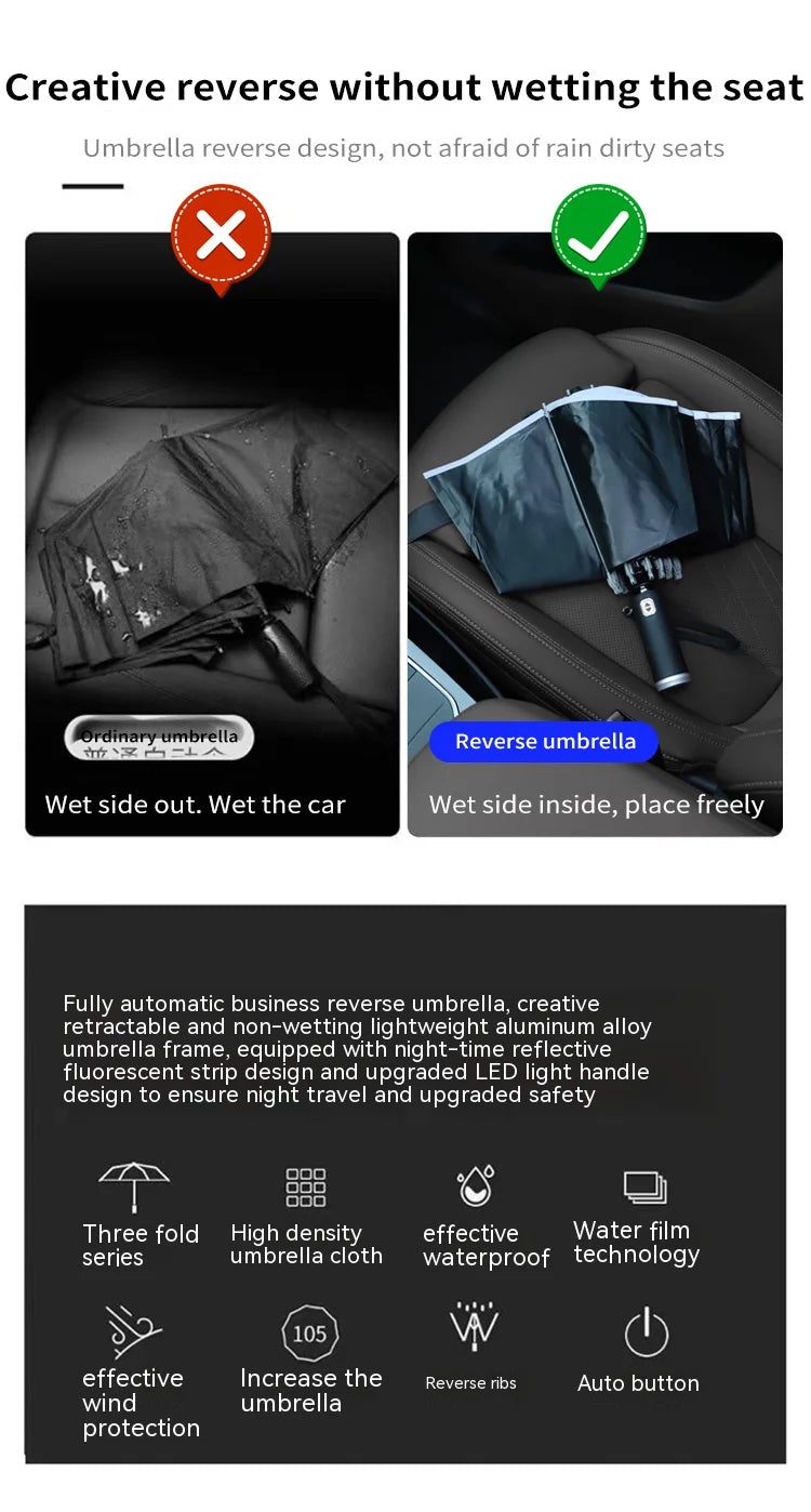 Led Light Automatic Folding Windproof Sunshade Umbrella