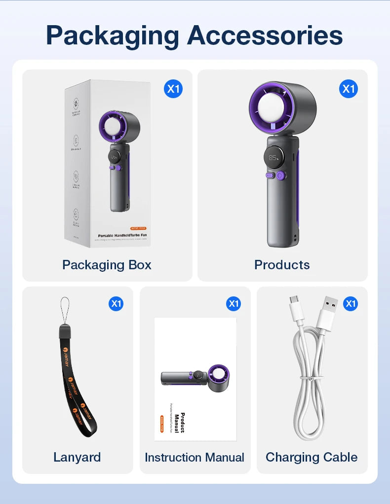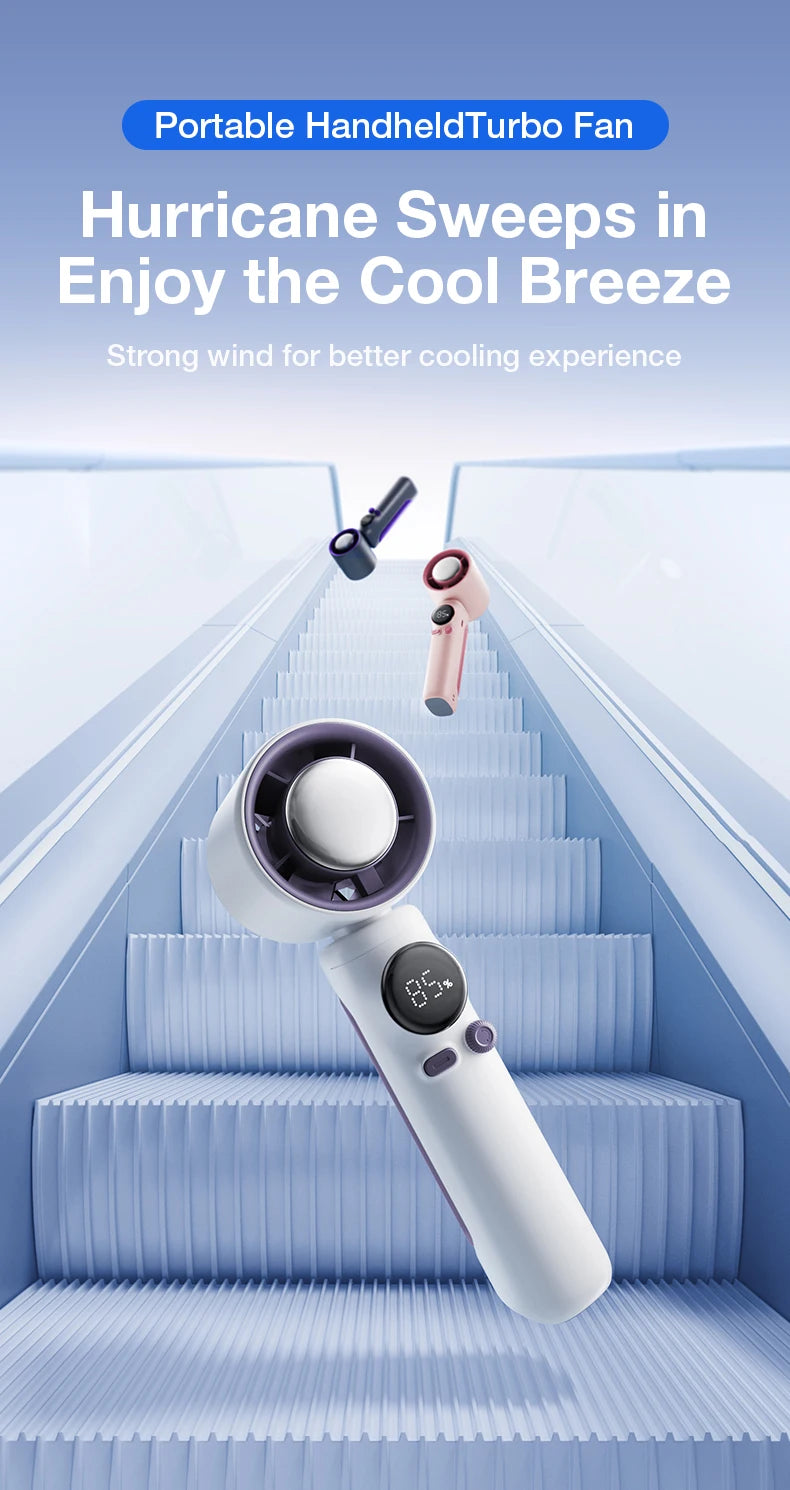 Handheld Mini Fan Hanging Neck Fan LED Digital Display 100 gear speed