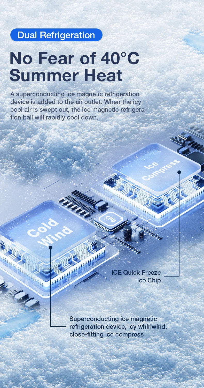 Cold Wind Ice Compress Dual Refrigeration technology combines two advanced cooling mechanisms. A high - efficiency compressor works in tandem with an innovative ice - compress module. The compressor rapidly circulates refrigerant, lowering the temperature significantly, while the ice - compress module uses a unique material that can absorb and release cold energy in a highly efficient way. This dual - action system ensures that the cooling effect is not only powerful but also consistent, providing a refreshing and cool environment even in the hottest conditions.