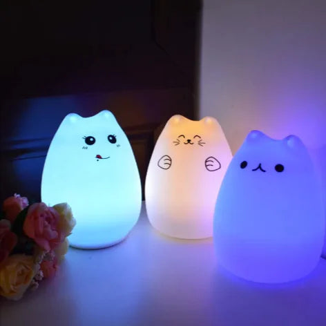 This adorable LED night light features a soft silicone design, perfect for creating a cozy ambiance. The touch-sensitive control allows you to switch between seven soothing colors, making it ideal for nurseries, bedrooms, and relaxation spaces. With a rechargeable battery offering up to 15 hours of use, it’s a perfect bedside companion. Compact and lightweight, it's easy to place anywhere for a comforting glow.