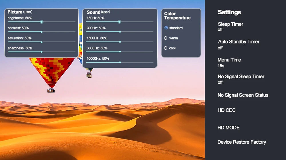 HD Signal support adjust image brightness,contrast,saturation,sharpness